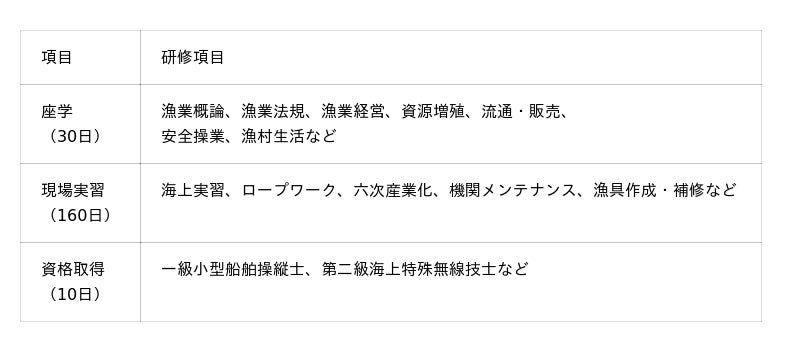漁業の基本的知識や技術の取得、県内各地の様々な漁業現場での実習を経てから、就業スタイルを決めたい方が対象