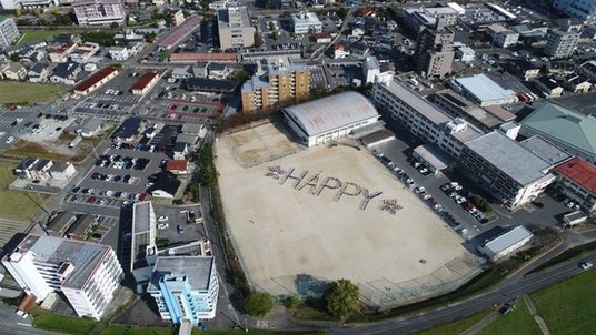 飯塚第一中学校で実施したドローンによる人文字撮影