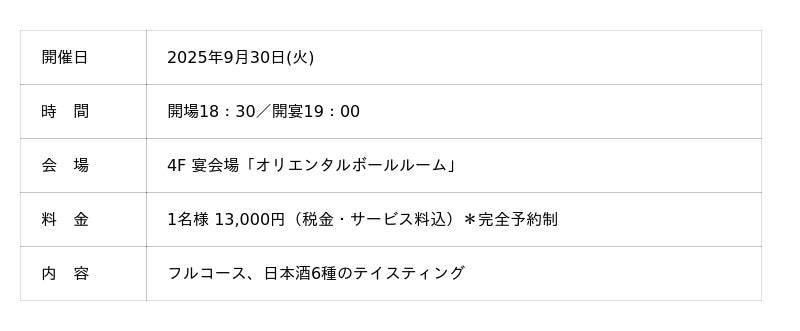和魂洋才フレンチ-秋の宴2025 ~佐賀の銘酒「天山」・「七田」を愉しむ会~ 概要