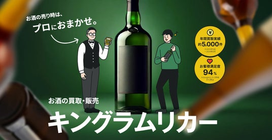 キングラムリカーは、関西と東京で4店舗展開するお酒専門買取店です。年間買取実績約5,000件、顧客満足度94%を誇るお酒買取のプロフェッショナルな査定が期待できます。