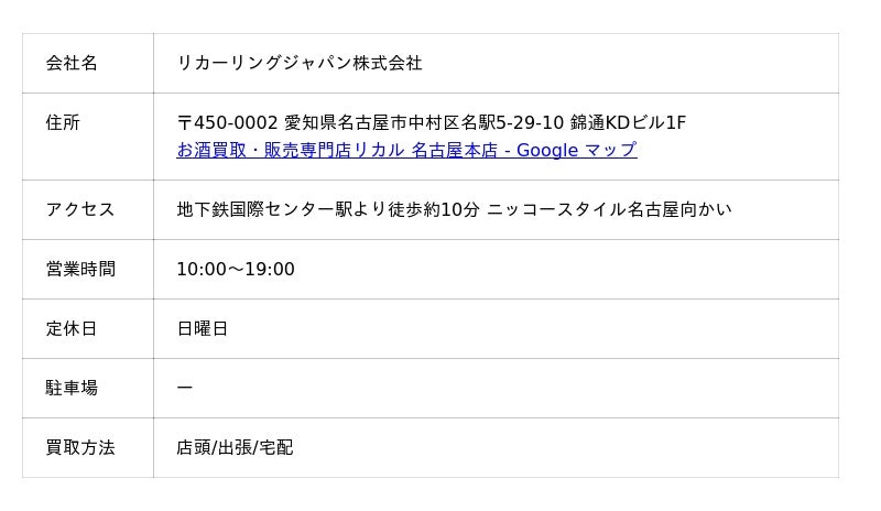 リカルは名古屋に店舗を持つお酒専門買取店です。「他店徹底対抗、買取強化銘柄であれば必ず高く買い取ります」をモットーとした買取で、名古屋を主に宅配買取で全国からの依頼に対応しています。