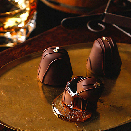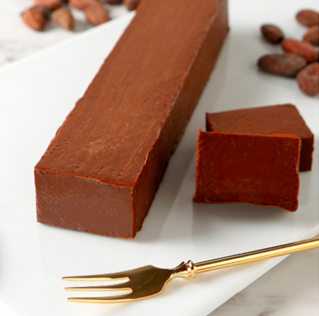 チョコレート、生クリーム、バター、卵などシンプルな材料を主原料に、ガーナ産のカカオマス、フランスの大西洋岸に浮かぶレ島でつくられたコニャックを加え、低温で長時間かけて蒸し焼きにすることで生チョコのような口溶けに仕上げました。