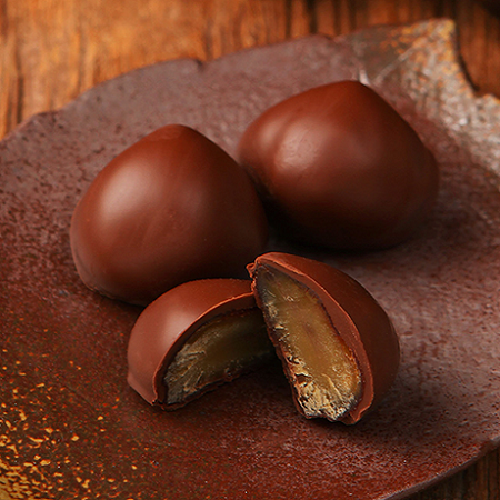 しっかりとした肉質と上品な甘みをもつ熊本県産の渋皮栗を、洋酒入りのシロップにじっくりと漬け込み、厳選した栗に合うチョコレートでコーティング。チョコレートと栗の甘みが絶妙です。