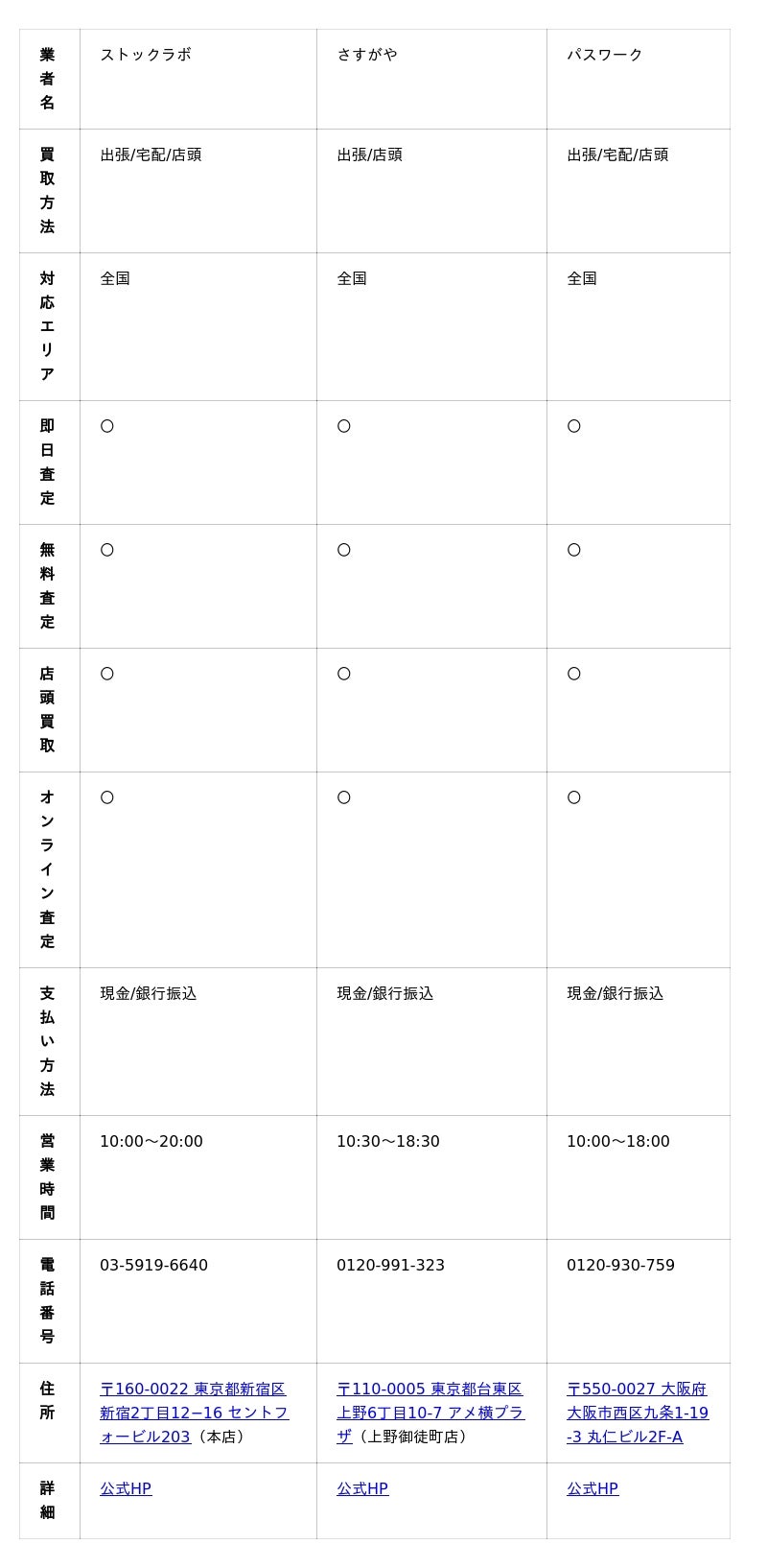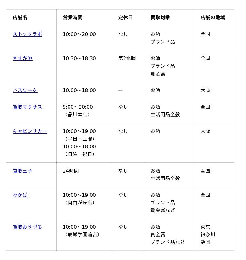次項では、これらの条件をできる限り満たした業者をご紹介するので、満足度の高いスプリングバンク買取を目指す方もぜひ参考にしてください。