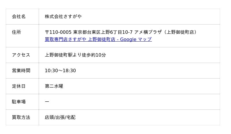 ここのエリアで有名なB店と比較して、気持ちよく納得のいく金額で売却することができました。他店ではレビューを見て行ったものの、あまり良い印象を受けなかったのですが、こちらのお店に来て本当に正解でした。丁寧に対応していただき、ありがとうございました。