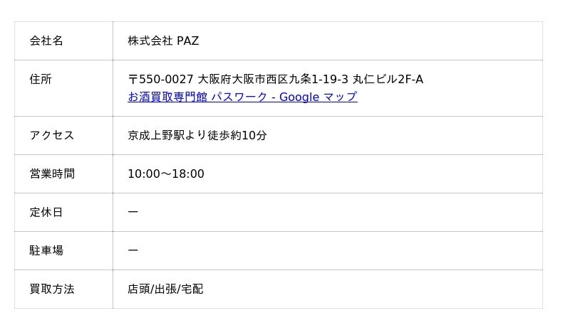お酒買取専門店パスワークは、大阪に店舗を持つお酒専門買取店です。全国宅配買取を受け付けているため、店舗が遠いエリアの方でも安心して依頼できます。