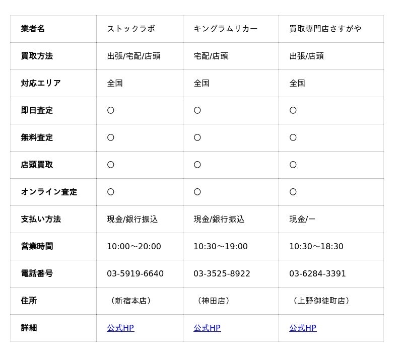 では、ソウメイ買取におすすめの業者をご紹介しましょう。