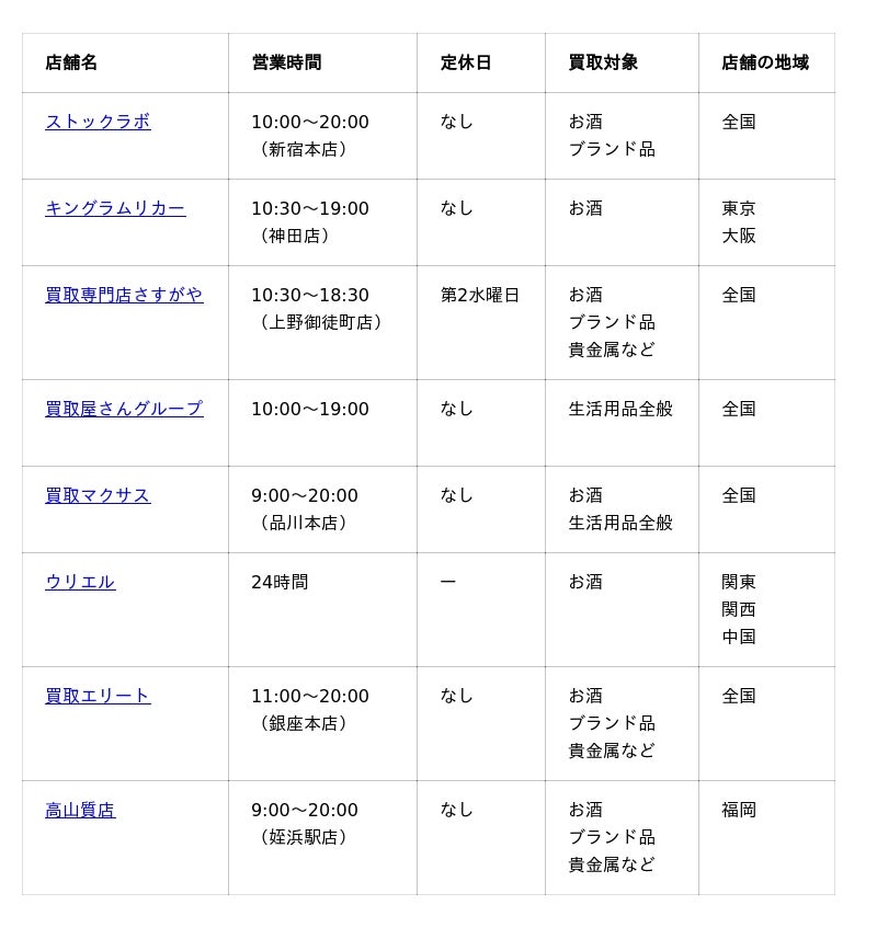 調査対象: 全国のお酒買取事業者