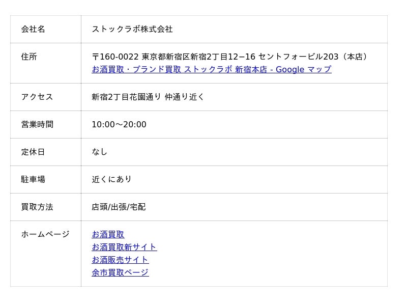 仕事柄お酒を頂く機会が多いのですが、そこまでお酒好きでもないので ずっと保管していました。 引っ越しすることになり、持っていくのも面倒なのでストックラボ様に 査定、買取依頼をお願い致しました。 今までブランド品の買取は経験があったのですが、お酒も買取されているのは 今回初めて知りました。 査定からレスポンスも早く、対応も良かったので大満足です。 また利用させて頂きたいショップです。