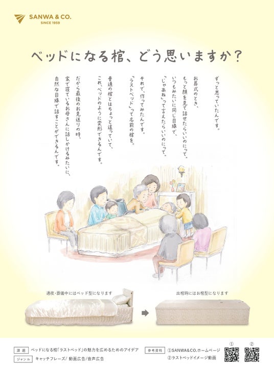 本年度に開催される第63回「宣伝会議賞」では、ベッドになる棺「ラストベッド」の魅力を伝えるアイデアを募集します。