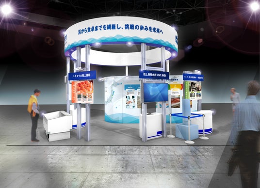 『浜から食卓までを網羅し、挑戦の歩みを未来へ』の新パーパスのもと、『養殖事業』をテーマに「陸上養殖・海面養殖」などの取り組みについて展示いたします。