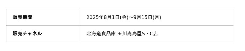 ■販売チャネル:北海道食品庫 玉川高島屋S・C店、ECサイト