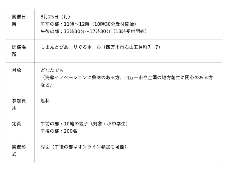 高知大学しまんと海藻エコイノベーション共創拠点(通称しまのば)は、2025年8月25日にシンポジウム『サイエンスアゴラ in 四万十~海藻が育む、四万十の未来~』を開催します。
