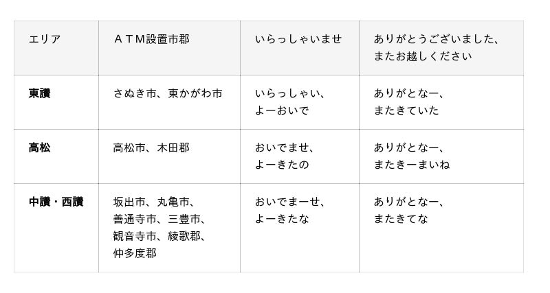 ATM設置エリアとご当地言葉