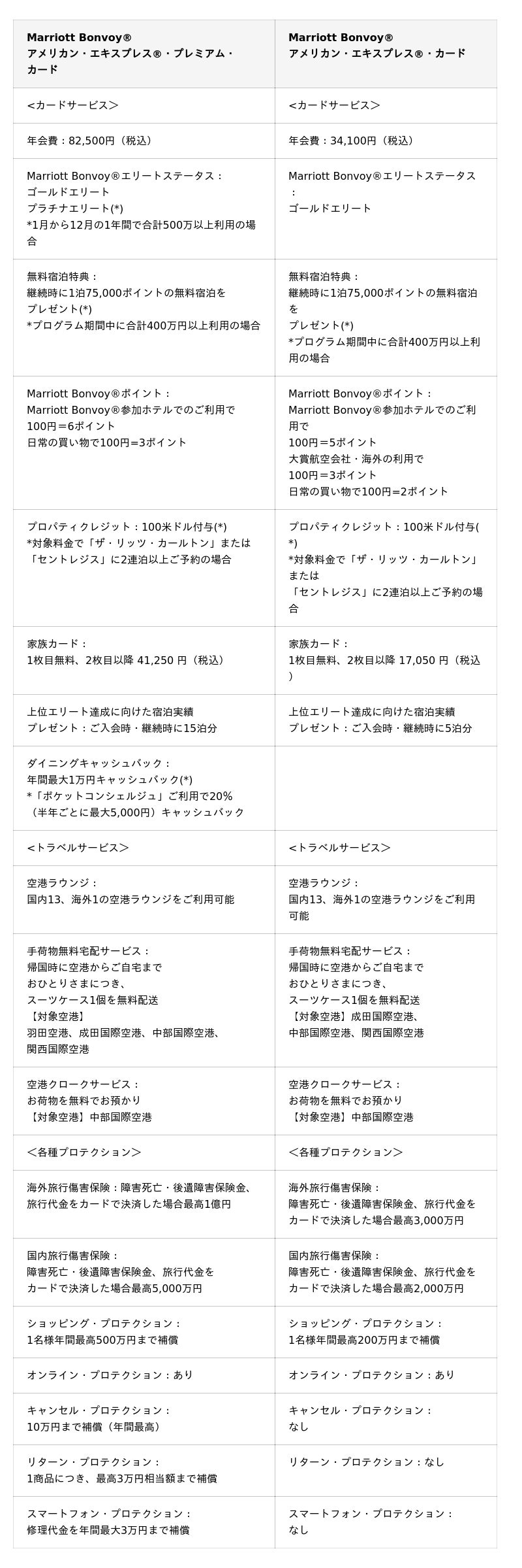 「Marriott Bonvoy(R)アメリカン・エキスプレス(R)・プレミアム・カード」「Marriott Bonvoy(R)アメリカン・エキスプレス(R)・カード」主な特長
