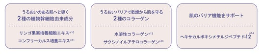 リッツ モイストシリーズの顔ともいえる植物幹細胞由来成分やコラーゲンなど、美容成分をリッチに配合。2 つのセラミド構造とともに肌のバリア機能をサポートして、乾燥から肌を守ります。