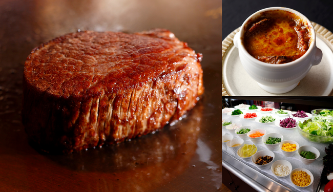 ホテルニューオータニ(東京)では、開業当時の味を守り続けるステーキハウス「RIB ROOM」にて、2023年7月31日(月)までの期間限定で『夏のスペシャルディナーセット』をご提供いたします。大人気のオニオングラタンスープに始まり、健康野菜のサラダバー、そして厳選した絶品肉を贅沢に使用した選べるメインディッシュがついたお得なディナーセットをお愉しみください。