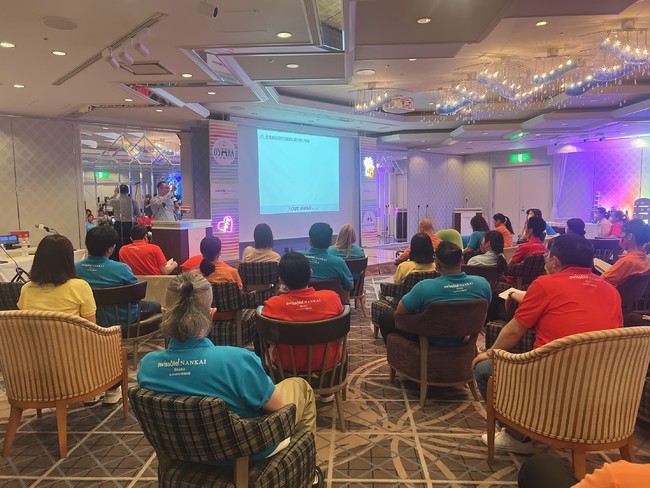 当日、出席した総勢60名の従業員はLGBTQにちなんだレインボーカラーのシャツを着用し、多様性を受け入れるスイスホテル南海大阪の理念を体現。日本で先駆的にLGBTQツーリズムに取り組んでいる株式会社アウト・ジャパン 小泉伸太郎様より、今後スイスホテル南海大阪がより”LGBTQフレンドリーホテル”であるために必要な情報、サービス、案内、知識などをご教示いただき、大阪府内や全国での取り組み事例をご講演いただきました。