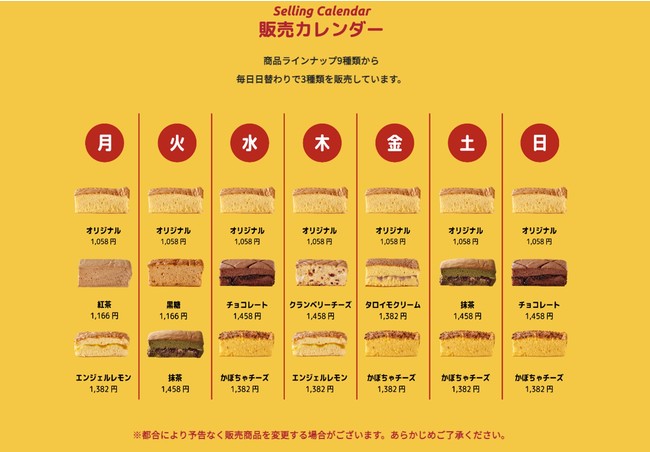 名東では曜日ごとに日替わりでカステラを販売しており、抹茶あずきカステラは火曜日・土曜日の販売です