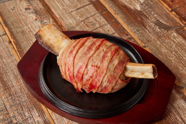 専用の熟成庫で 30 日間ドライエイジングさせた牛タンの挽肉をたっぷりと練り込んだハンバーグで熟成特有の香ばしい香りと牛タンの肉肉しい食感をお楽しみいただけます。ハンバーグの中にはトリュフを練り込んだチーズマッシュポテトを巻きこみ、芳醇な香りとなめらかな食感をお肉と一緒にお楽しみいただけます。骨付き肉を手で持ってルフィのように記念撮影をした後はそのまま豪快にかぶりついたり、切り分けたりして仲間と一緒にお楽しみください。