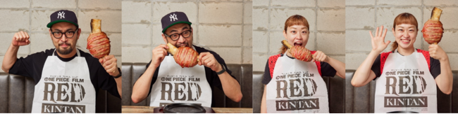 『KINTAN』×『ONE PIECE FILM RED』 は、ルフィの大好きな実寸大!?骨付き肉とKINTAN名物の30日間熟成KINTANをはじめ、上カルビ、PRIMEハラミ、厚切りランプステーキなど、計6種のお肉をお腹いっぱい満喫できる焼肉セットです。KINTAN×伊勢丹×REDのトリプルネームオリジナルBOX入り、KINTAN限定RED紙エプロン5枚とKINTAN限定REDアクリルキーホルダーが付属します。KINTAN限定REDアクリルキーホルダーは全7種からランダムで2種が封入されるセット¥21,210(限定290食)と、アクリルキーホルダー全7種が全て封入されるコンプリートセット¥29,290(限定29食)を8月3日より販売いたします。(販売サイト:https://moodmark.mistore.jp/)