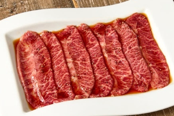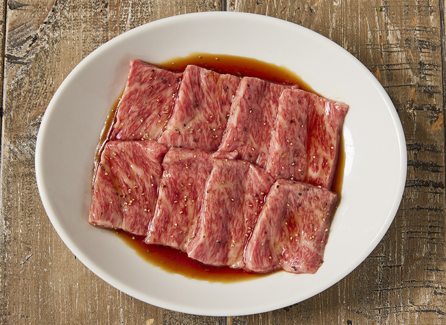 和牛のハラミに比べ、脂身が少なく、肉本来の味わいをしっかりと
