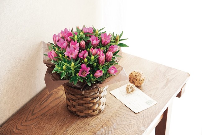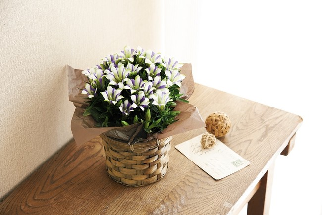 日比谷花壇で人気の可憐さと気品のあるピンク色の花が魅力的なりんどうの鉢植えです。