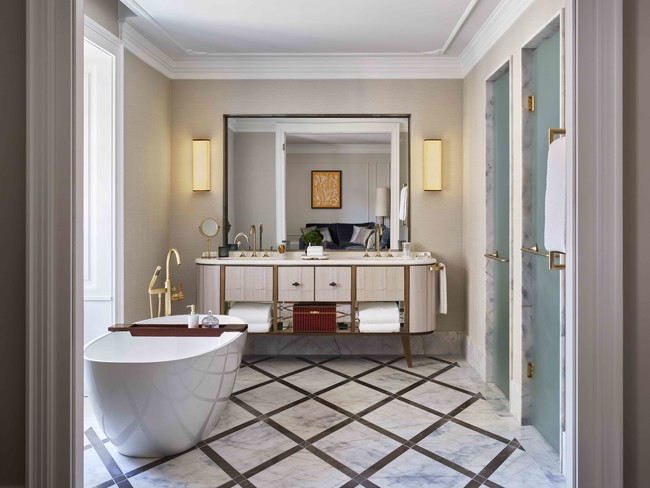 インテリアデザイナーのAlexander Waterworthは、我が家から遠く離れた我が家となる、ラグジュアリーな邸宅を構築しました。温かく洗練されたスタイルが、7階建てのホテル4階分にわたる客室71室とスイート28室に吹き込まれています。客室のニュートラルなカラー パレットは、暖かみと気品のある洗練をもたらし、オーストリア アルプスの花であるエーデルワイスにインスピレーションを得た、手工芸による銅製の壁面照明などの豊かなディテールの背景になっています。光に満ちた空間は、コスモポリタンな首都独自の遺産とデザインスタイルを反映し、クルミ材、レザー、地元で調達した灰褐色の大理石をあしらったミニ バー、ウィーンの一流メーカーに注文した照明を特徴とする豪奢な浴室を含む、カスタム メイドの設えを特徴としています。1849年創業のウィーン分離派の柄で有名な名門企業Backhausenによる個性溢れるファブリックが、カーテンから椅子、ティッシュ ボックス、ベッドサイドのメモ帳までの仕上げにあしらわれています。アートとスタイリングのキュレーション代理店Atelier27とのコラボレーションにより、イラストレーション、金箔を印刷した古写真、写真、切り絵、リトグラフ、壁掛け彫刻などを含む、国際的な一流アーティストへの委託作品が飾られています。