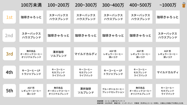 世帯年収別 コーヒー人気ランキング