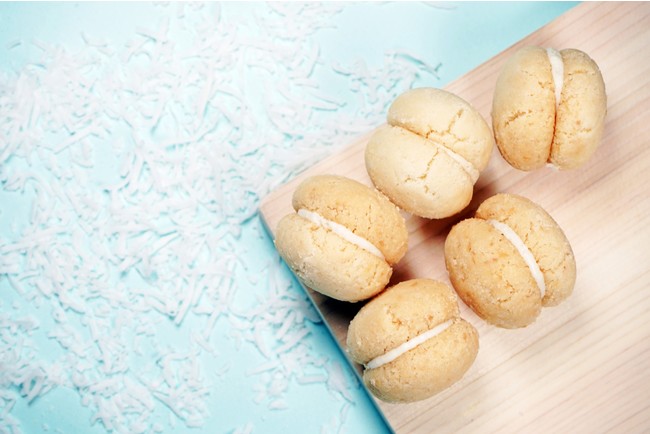 暑い夏には甘い香りに常夏気分を感じるココナッツフレーバーが登場します。ココナッツのミルキーな甘さに、ココナッツファインを練りこみ食感にアクセントを加えました。サクサクほろほろのクッキーにチョコレートをサンドして焼き上げた夏限定の一品です。