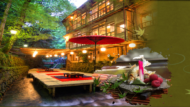 雨天・増水・警報発令時は安全の為、川床でお食事が出来ません。その場合は館内でのお食事となり、 他のお客様とご一緒のお食事場所となります。(個室ではありません)
