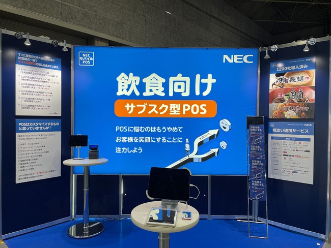 展示ブースでは、NECが考えるサブスク型POSの本質的な提供価値と、それに気づいた大手飲食チェーン様が導入を始めているという事例をご紹介させていただきました。
