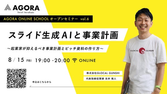 株式会社AGORA(本社:東京都町田市)は、起業に役立つ創業支援のWEBセミナーを毎月開催しています。今回は、起業準備や資金調達において重要な「事業計画書」と「ピッチ資料」をテーマに、生成AIツールを活用することで、誰でも短時間でプロレベルのスライド資料を作成できるテクニックをお伝えします。