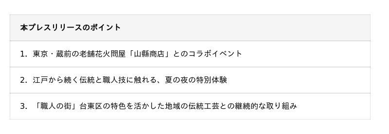 野村不動産ホテルズ株式会社(本社:東京都新宿区/代表取締役社長:石井康裕、以下「当社」)が運営する「ノーガホテル 上野 東京(以下「ノーガホテル上野」)」は、ブランドコンセプト「地域との深いつながりから生まれる素敵な経験」を体現する特別イベントとして、2025年8月19日(火)より期間限定で、宿泊ゲストを対象に、東京・蔵前で長年にわたり花火文化を支えてきた老舗花火問屋「山縣商店」とのコラボレーションによる国産線香花火の体験イベントを開催いたします。