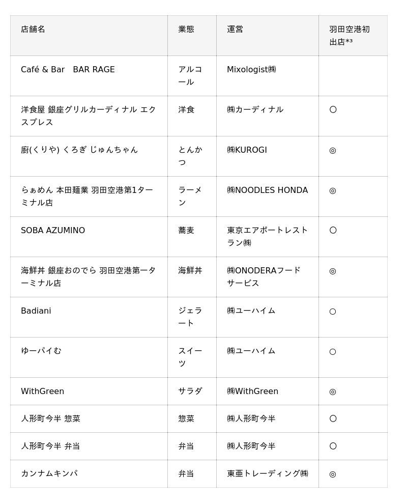 *3◎運営会社として初出店 〇当該店舗業態として初出店
