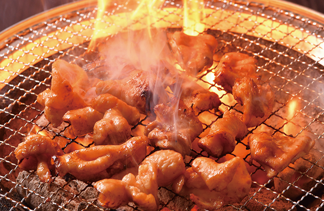 炭の遠赤外線の効果で表面を素早く加熱し、表面はカリっと内面はジューシーに、旨味成分を閉じ込めたま ま焼き上げる事が出来ます。カリカリジューシーのホルモンをお楽しみ下さい‥。