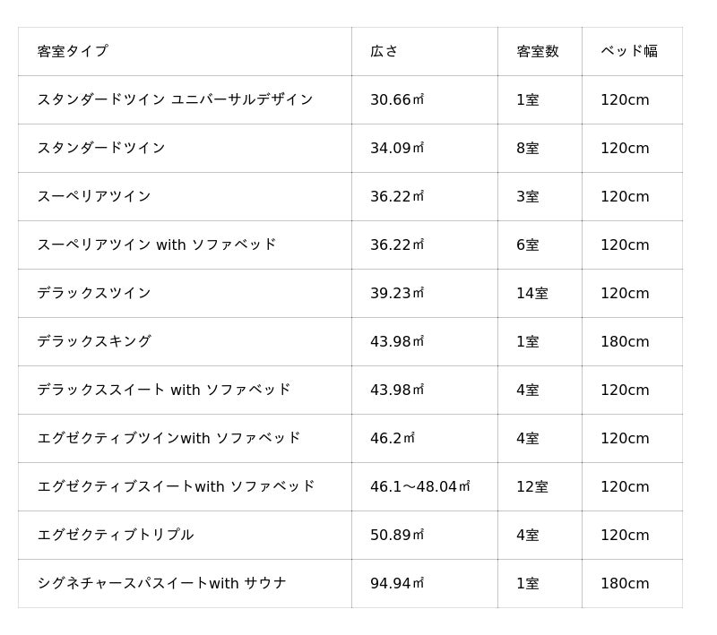 <客室タイプ>