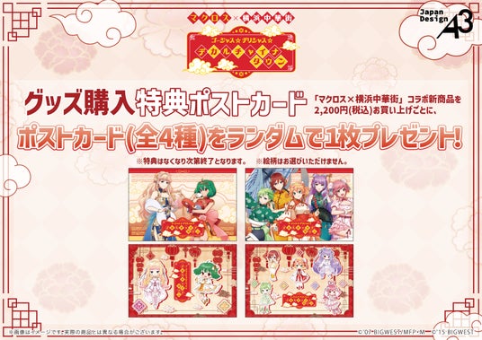 POP UP SHOPにて「マクロス」×横浜中華街のコラボ新商品を2,200円(税込)お買い上げごとに、ポストカード(全4種)をランダムで1枚プレゼント!