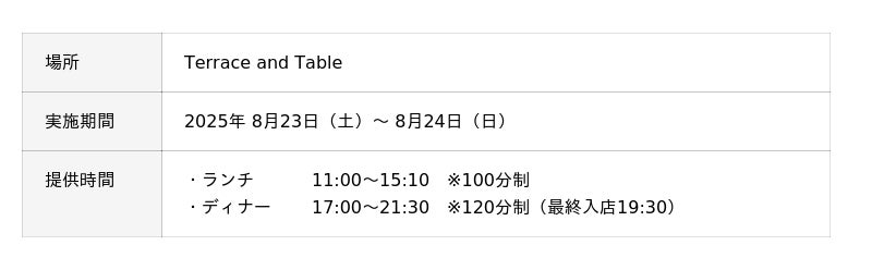 ・オールデイダイニング「Terrace and Table(テラスアンドテーブル)」