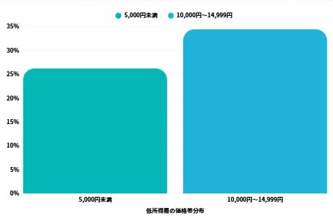 - 200万円未満世帯:5,000円未満(26.2%)と10,000円~14,999円(34.4%)に分散