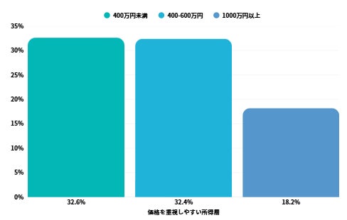 - 価格を最重視する層:年収400-600万円の中所得層が32.4%で最多