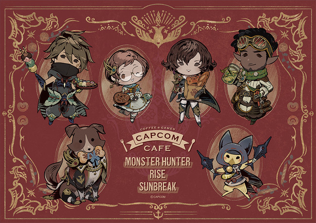 オトモガルク、オトモアイルーはもちろん、受付嬢「チッチェ」や、王国騎士「フィオレーネ」など『モンスターハンターライズ:サンブレイク』より登場した新たな仲間たちもカプコンカフェならではの可愛らしいイラストで登場します。