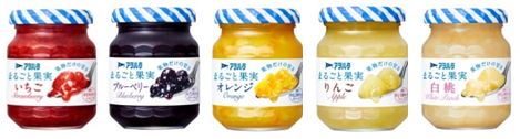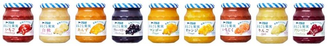 「まるごと果実」シリーズは2012年の発売以来、生のフルーツのようなみずみずしい果肉感、豊かな香りが市場に受け入れられ、現在では9種14品(いちご、白桃、あんず、ブルーベリー、マンゴー、オレンジ、いちじく、りんご、クランベリー)とラインアップが拡充しています。手軽に試せる小容量サイズと通常サイズの2つのサイズで展開します。