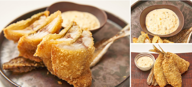 お刺身用に仕入れた新鮮な大判の鯵を、贅沢にフライにいたしました。外はサクサク、なかはフワフワの「個室居酒屋 番屋」特製鯵フライは、お食事のメインのおかずのほか、お酒のおつまみとしてもおすすめです。自家製の出汁ソース、または別売りの自家製タルタルソースでお召し上がりください。