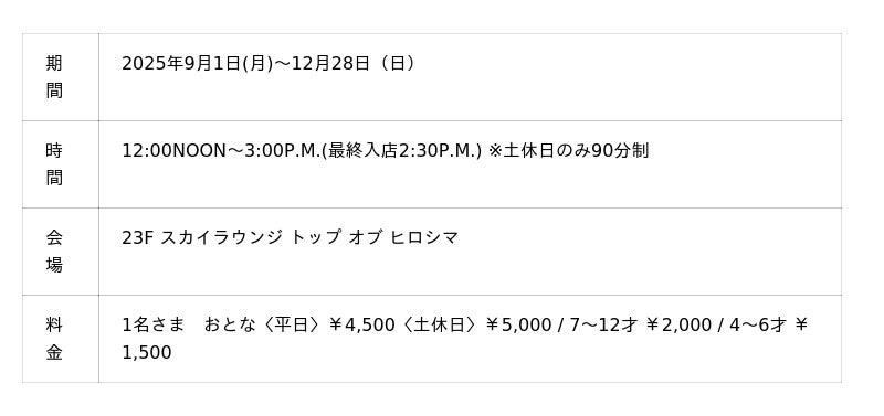 空と海に囲まれたリゾート「グランドプリンスホテル広島」(所在地:広島市南区元宇品町23-1、総支配人:平瀬 春男)は、2025年9月1日(月)~12月28日(日)の間、広島県では初開催となる「ムーミン」とコラボレーションしたランチブッフェ「ムーミン シーサイドランチブッフェ」を開催いたします。