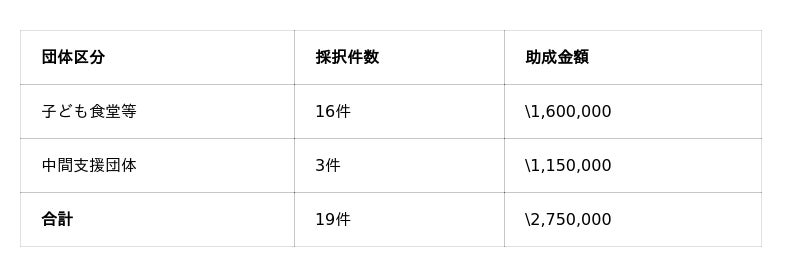本助成事業は、子どもや生活困窮者への貧困対策、子ども食堂の運営、食や食育の支援を通じて、国内外の人々の生活を少しでも豊かにし、将来への希望と生きる力を育み、愛と喜びのある暮らしができる社会の実現に貢献する」という当財団の活動目的達成の第一歩として立ちあげられました。