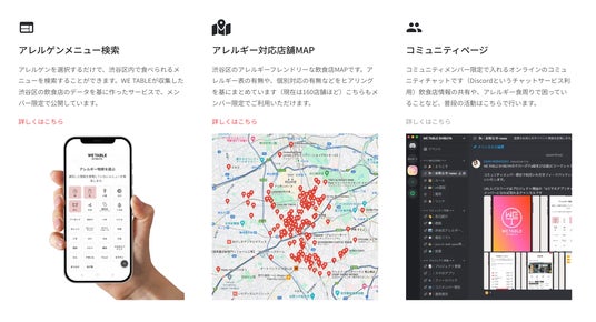WE TABLE SHIBUYAでは、初期のコミュニティメンバーを公式ホームページで募集しています。(https://wetable.jp)メンバーはDiscord上のコミュニティチャットを通じて情報交換や交流を楽しめることに加え2つの特典があります。1.渋谷区内のアレルギーに配慮した飲食店検索や、飲食店のアレルゲンメニュー検索ができるアプリがメンバー限定で利用可能に 2.アレルギーのある人もない人も一緒に楽しめる食体験へ優先的にアクセスすることが可能になります。