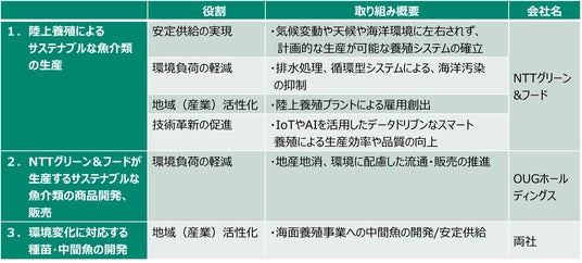 OUGホールディングスとNTTグリーン&フードは、陸上養殖を通じた水産業のESG化に向け取り組むことを契機に、短期的な事業協力のみならず、水産業が抱える中長期的な課題解決を視野に入れ、相互に協力しながら継続的に取り組みを推進してまいります。