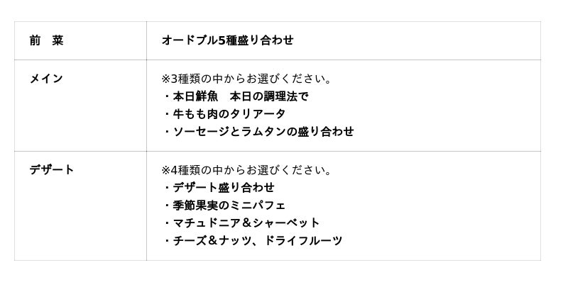 ※メニュー内容は仕入れ状況等により、変更になる場合がございます。