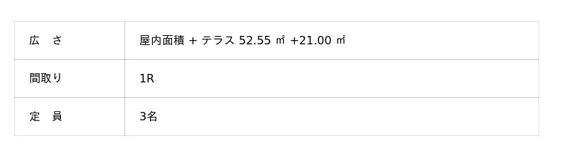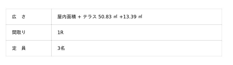 - AMI:50.83平方メートル + テラス13.39平方メートル (1R)